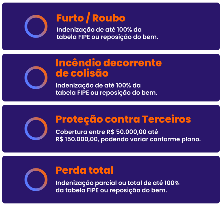 Proteção Veicular Completa, com ressarcimento de até 100% da tabela FIPE